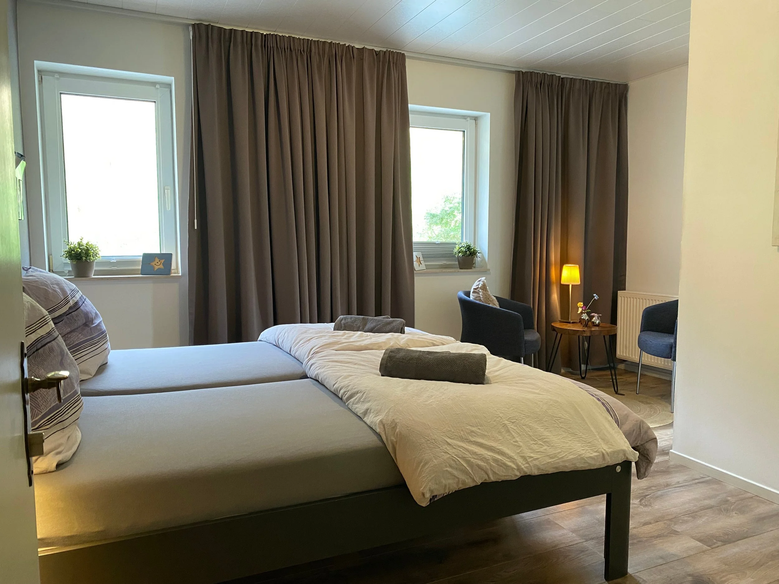 Genießen Sie unsere gemütliche Junior Suite mit einem exklusiven Badezimmer auf dem Flur, das nur Ihnen zur Verfügung steht. Das Doppelbett, bestehend aus zwei Einzelbetten, sorgt für erholsamen Schlaf. Ideal für einen kürzeren Aufenthalt nach einem erlebnisreichen Tag.